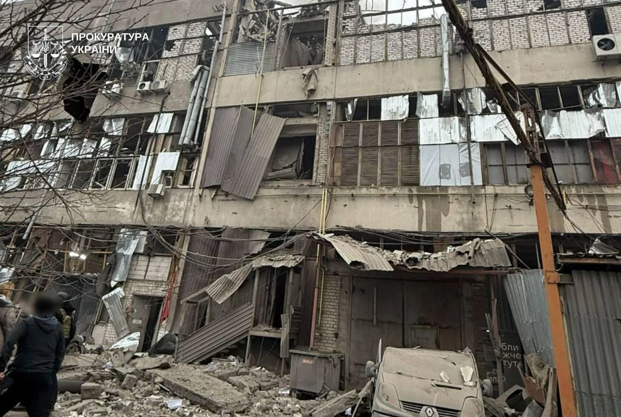 Фото предприятия в центре Днепра, куда был прилет баллистики, публикует прокуратура.