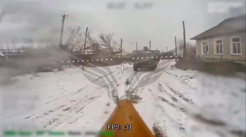 Дрон «Рубикона» на оптоволокне атакует украинскую военную машину в Донецкой области, январь 2026 года. Удары по логистике — приоритет подразделения